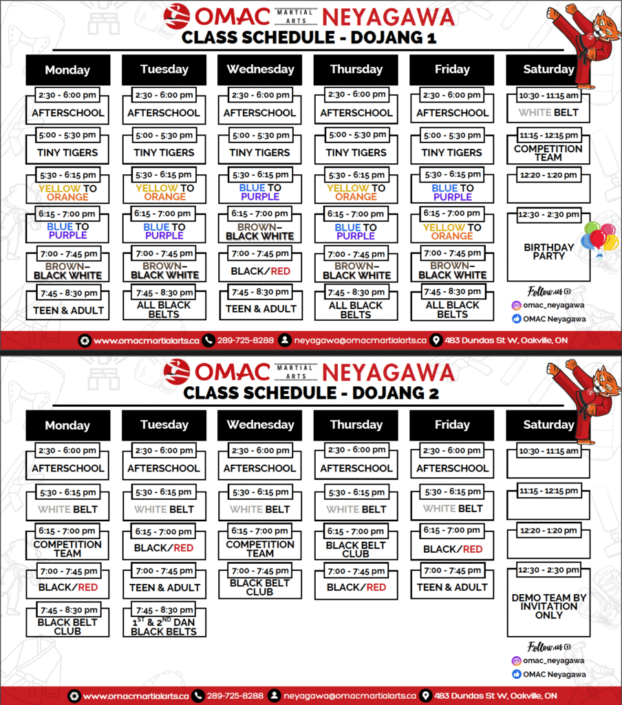 Welcome to OMAC Martial Arts in Neyagawa, Oakville, where excellence in martial arts is our tradition and commitment. Under the guidance of our Head Master and Manager, Master Ato, we offer a diverse range of programs designed to cater to all age groups and skill levels. From the ancient discipline of Taekwondo to the time-tested art of Karate, our experienced instructors are here to guide you on your journey towards mastery. Our after-school program is a standout offering, providing a safe and enriching environment for students to not only hone their martial arts skills but also grow personally and academically.
