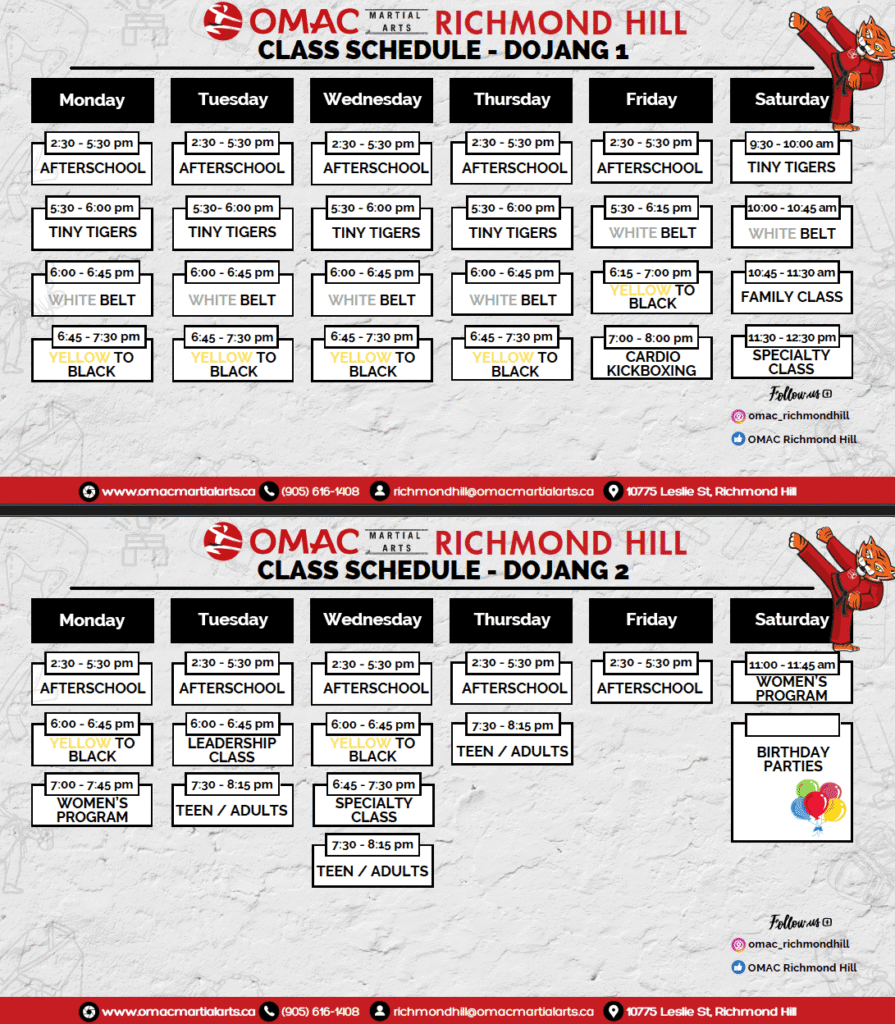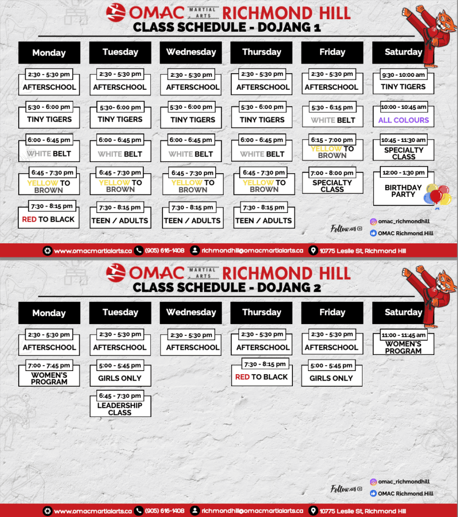 We’re excited to bring OMAC Martial Arts to Richmond Hill, expanding our legacy of world-class martial arts training. Led by a team of highly skilled instructors, our newest location will offer after-school programs, evening classes for kids and adults, and seasonal camps, including summer camps, March Break camps, and winter camps.